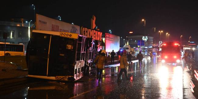 Çekmeköy’de İETT’ye bağlı özel halk otobüsünün devrildiği kazada şans eseri yara almayan şoför, tedbir amacıyla kontrol için hastaneye götürüldü.