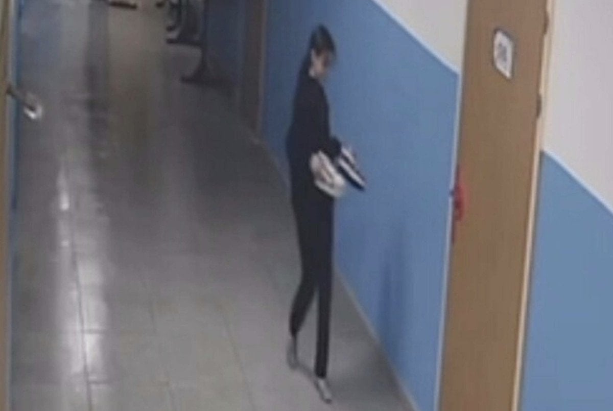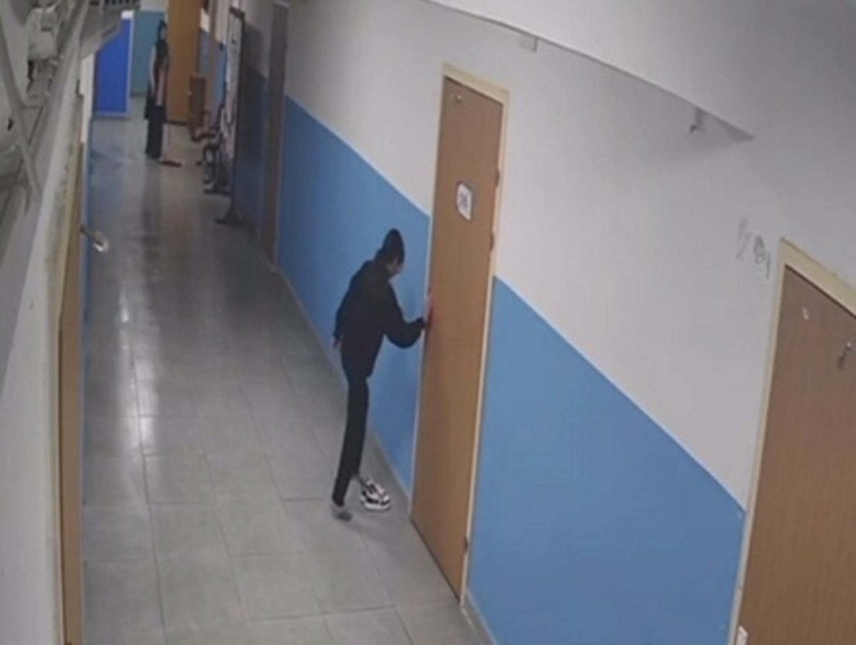 Bu anlar, temizlik görevlisinin şaşkın bakışlarıyla birlikte okulun güvenlik kameralarına yansıdı.